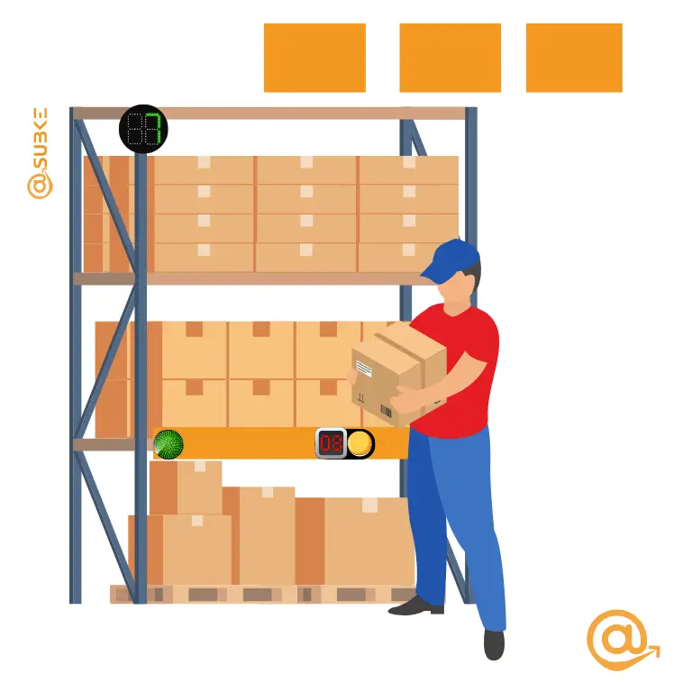 Pick-by-light is a paperless picking process in which light signals are displayed on the shelf: